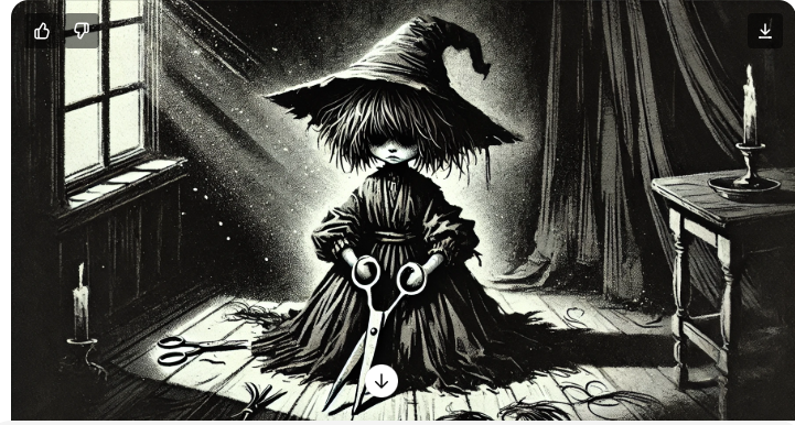Elle avait décidé que, pour se venger de leur beauté, elle choisirait chaque soir une petite fille pour lui taillader les cheveux.