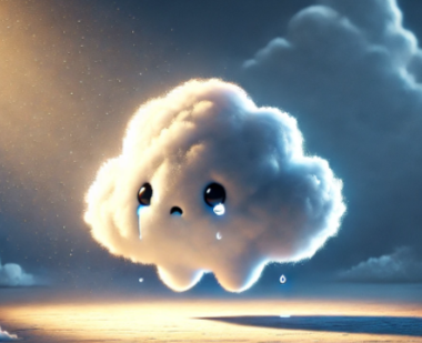 Soudain, il aperçut une petite tache blanche tassée dans un coin du ciel. Intrigué, il s’approcha et distingua un bébé nuage.